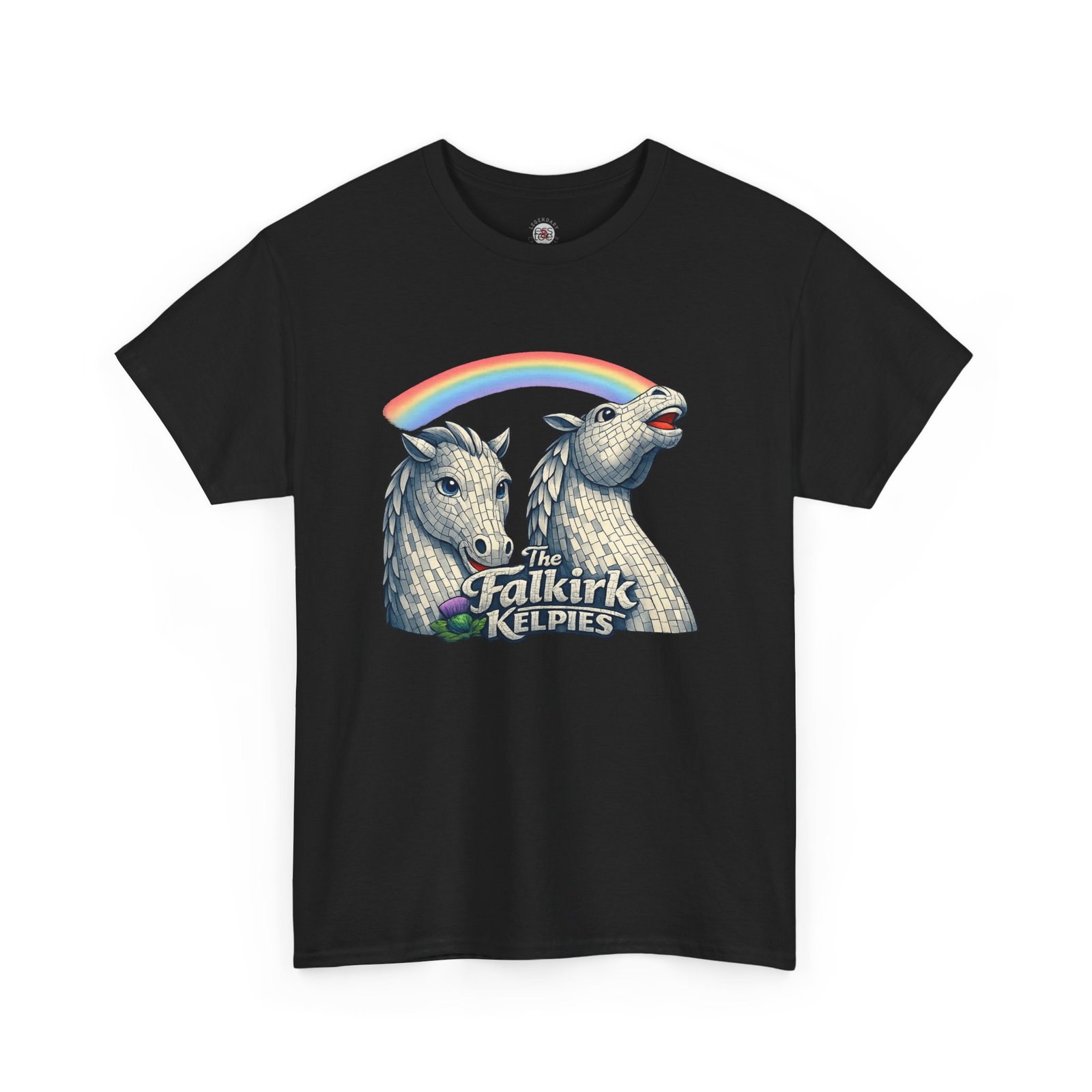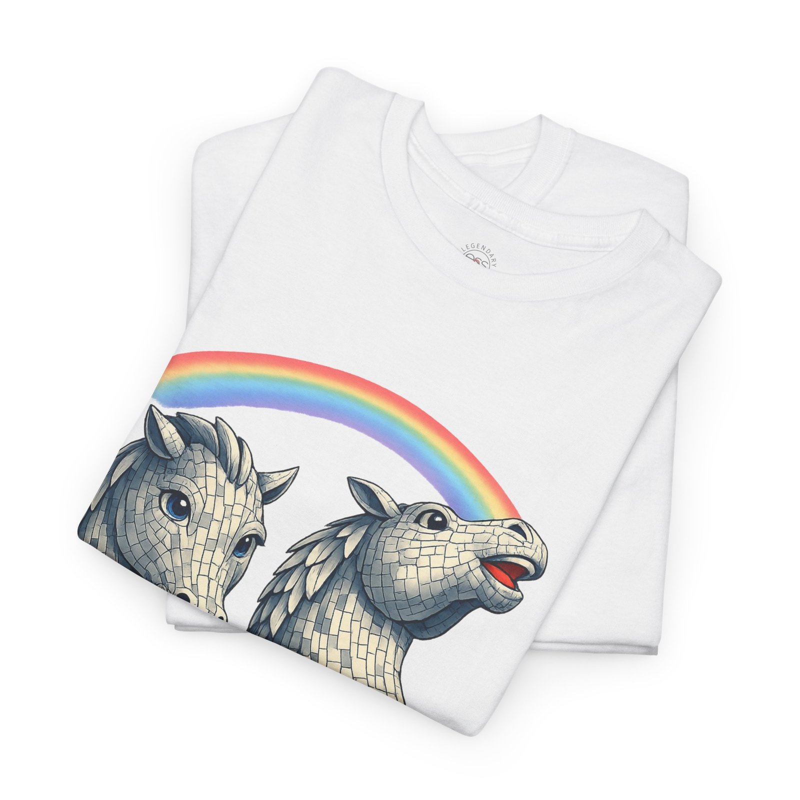 Falkirk Kelpies illustration Tee | Scottish mythical horse sculpture, rainbow accent
